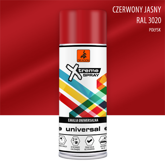 Emalia uniwersalna w aerozolu czerwony jasny 400ml Dragon