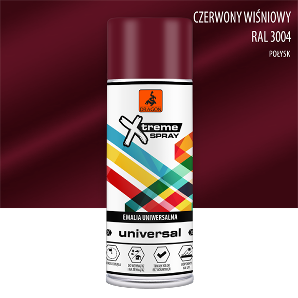 Emalia uniwersalna w aerozolu czerwony wiśniowy RAL 3004 400ml Dragon