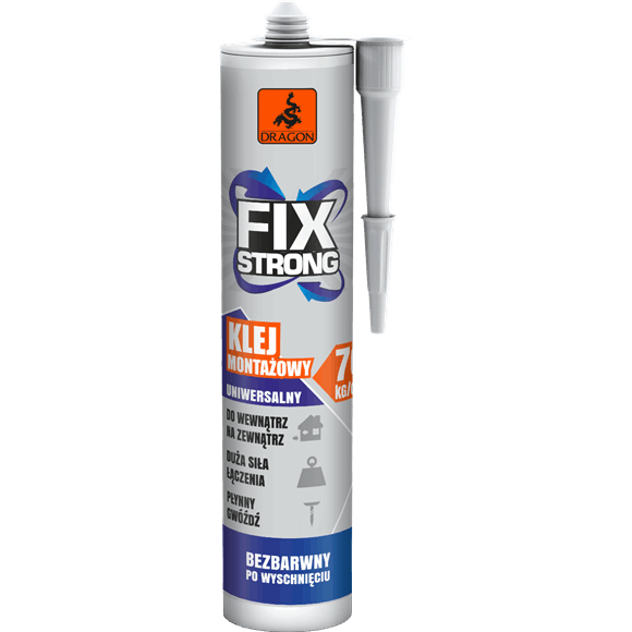 Zamów w przeciągu 02:21:32 a wysyłkę otrzymasz jutroKlej montażowy akrylowy fix strong bezbarwny 280ml Dragon