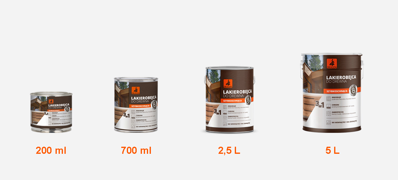 Szybkoschnąca Lakierobejca Dragon to wysokiej jakości produkt ochronno – dekoracyjny do zabezpieczenia drewna zarówno wewnątrz pomieszczeń jak i na zewnątrz.